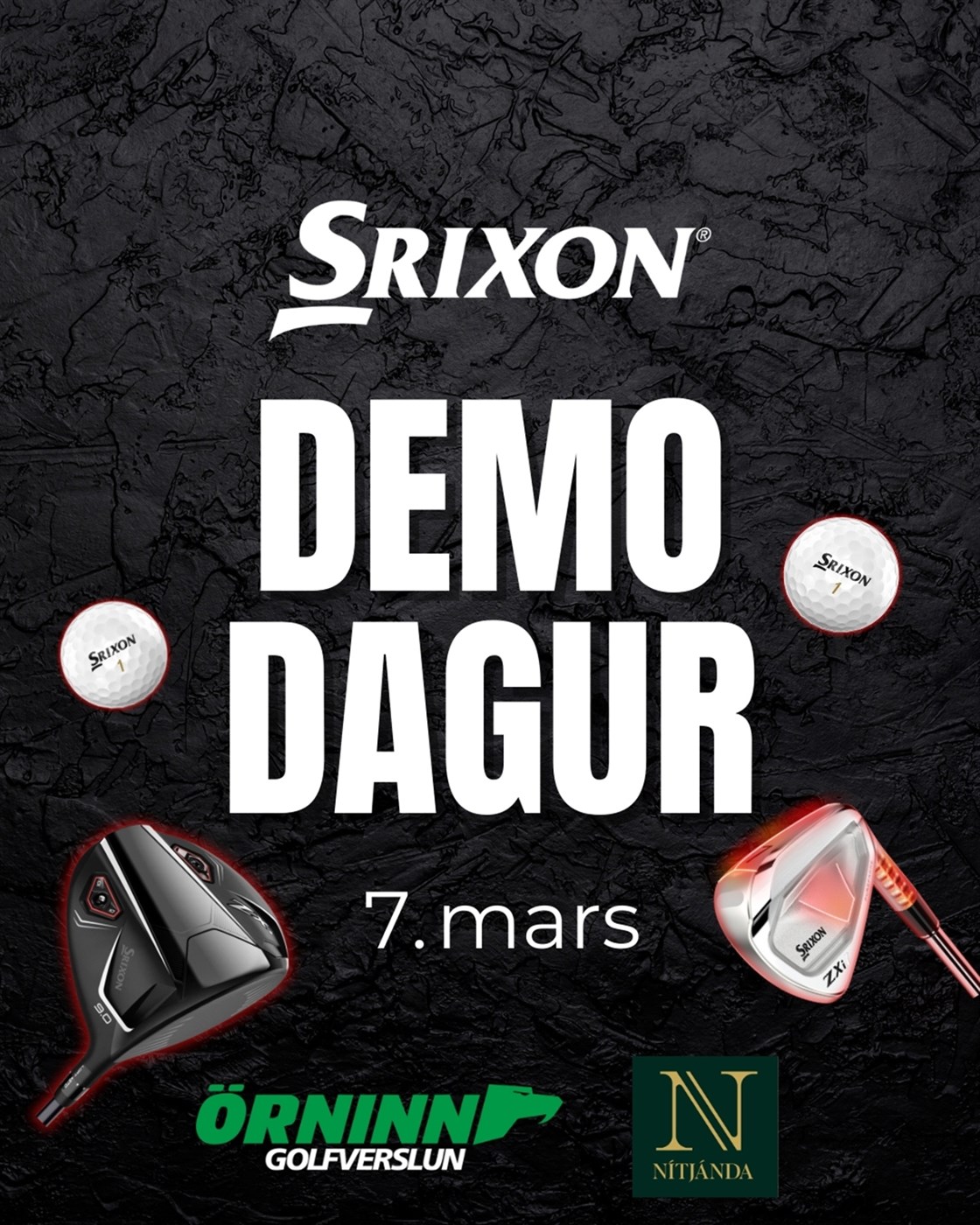 Nítjánda og Örninn golfverslun verða með Srixon Demo dag laugardaginn 7. mars frá kl. 10-16 á golfhermasvæði Nítjándu - þar sem Örninn var áður til húsa á Bíldshöfða 9.