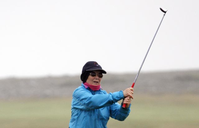 Eldri kylfingar á Íslandi eru orðnir öflugasti golfklúbbur landsins og þeir láta ekki óveður stoppa sig þegar halda skal stigamót til landsliðs.